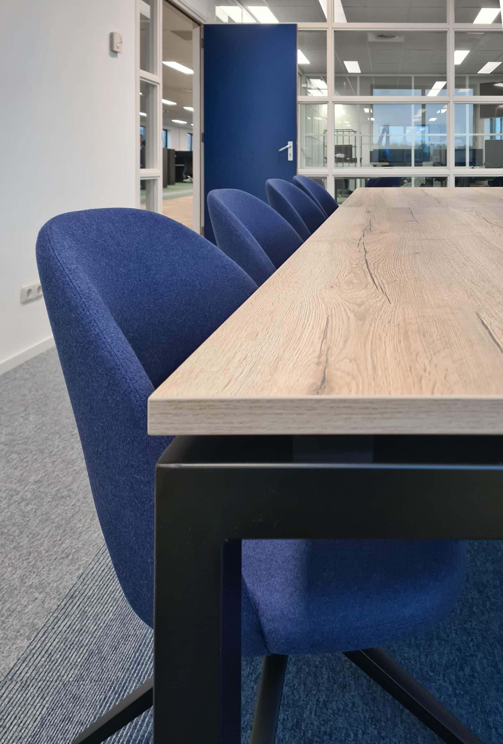 De bestaande werkplekken zijn opnieuw gebruikt alleen hebben we de werkplekken voorzien van nieuwe eiken decor bladen.